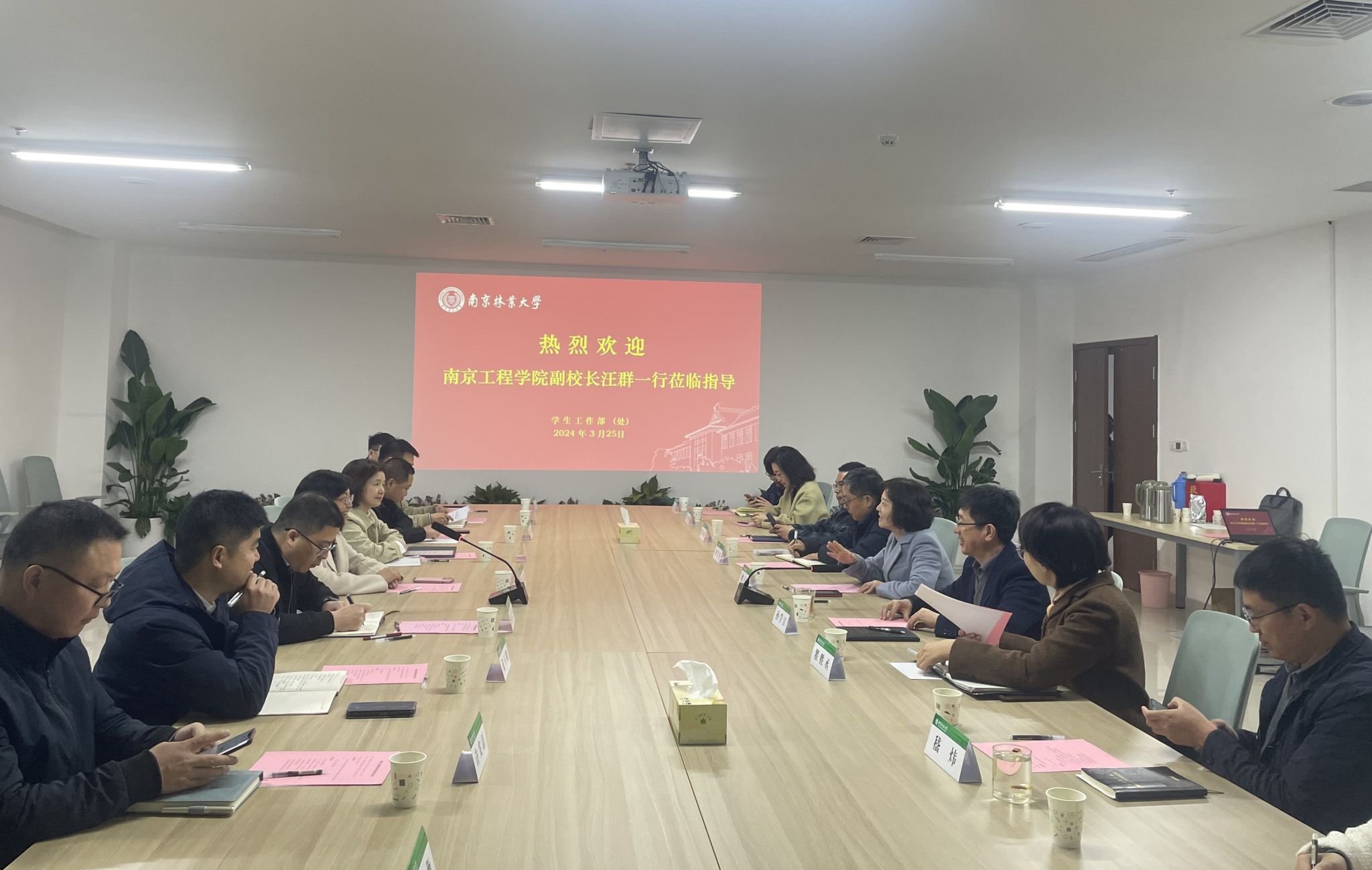 为深入贯彻落实学校第四次党代会精神,聚焦一流应用型大学建设“登峰计划”,学习借鉴兄弟学校相关工作先进经验,3月25日,党委常委、副校长汪群带领学生工作处、校团委相关人员赴南京林业大学,就学生工作和共青团建设进行调研交流。南京林业大学党委常委、副校长缪子梅接待了汪群一行。