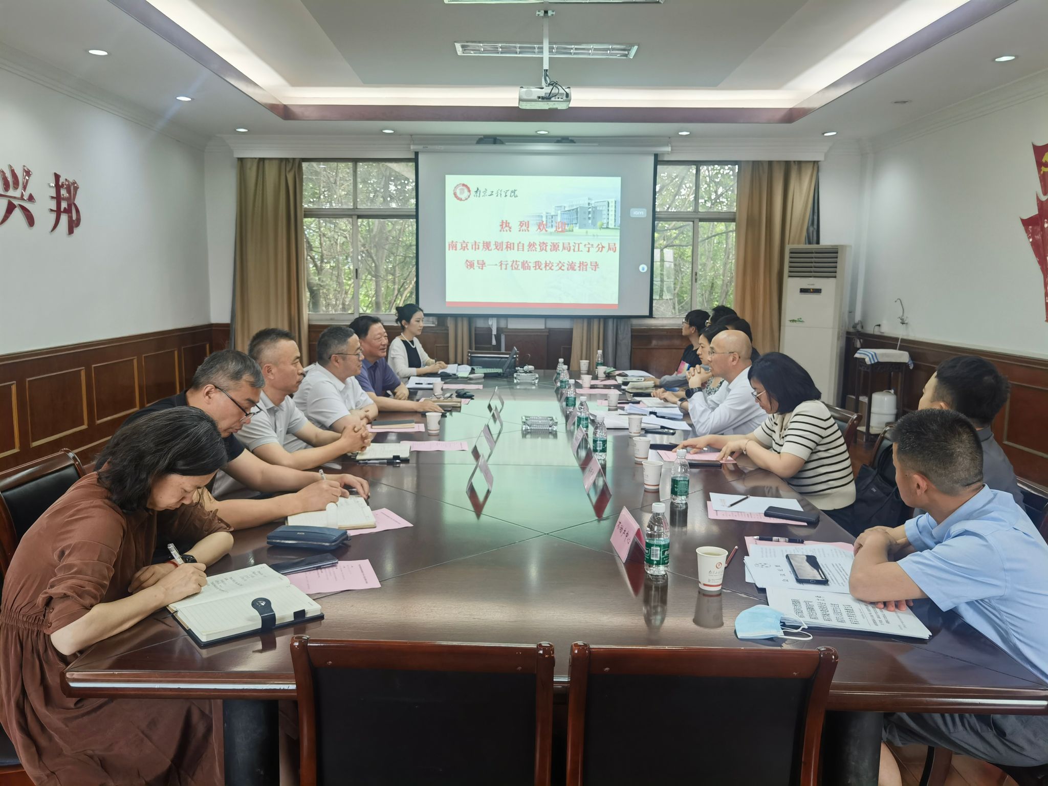 5月22日下午,南京市规划和自然资源局江宁分局局长胡传宏、副局长梅笑冬等一行来校交流指导。副校长包永强热情接待了来宾并座谈。