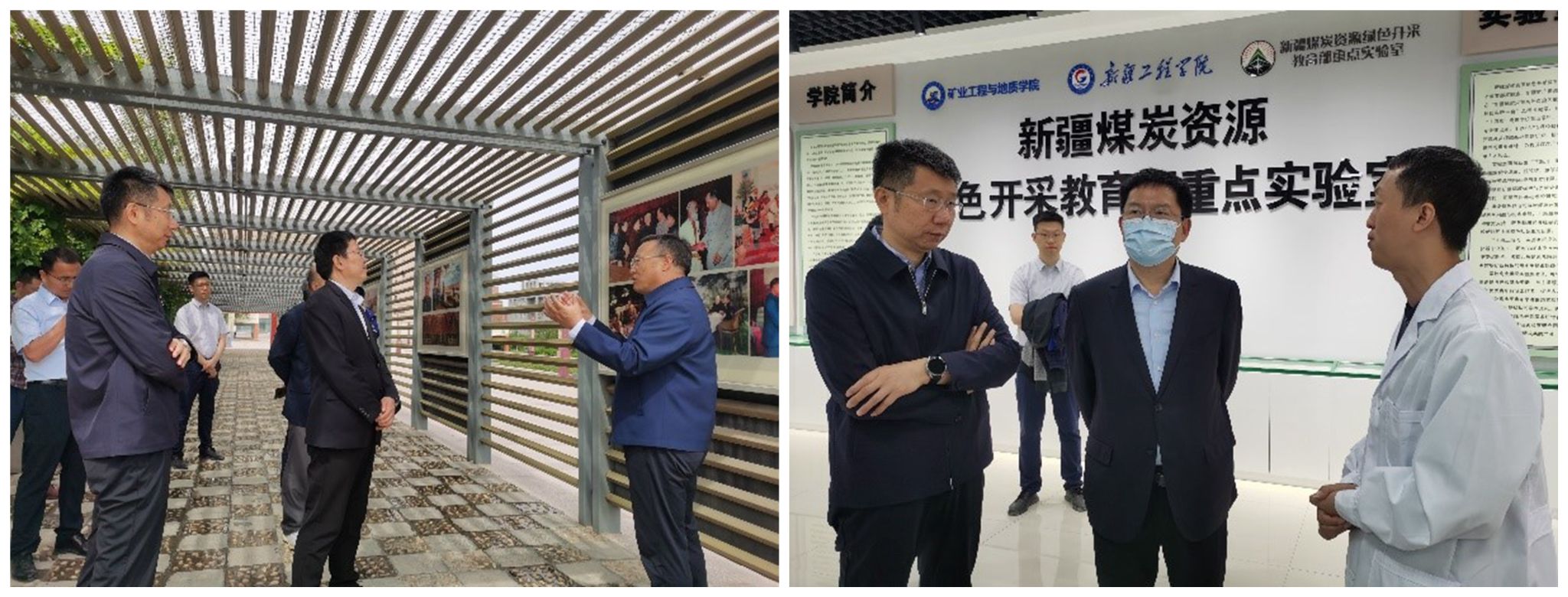 在新疆工程学院,党委书记李玉鸿、党委常委、副校长冯波热情接待了濮励杰一行,并对前期双方在硕士学位授权单位申报过程中开展的深入交流表示感谢。濮励杰表示,新疆作为向西开放的桥头堡,具有独特的区位优势,以此为背景,两校在国际合作办学、人才培养、师资交流、共同开展有组织科研等方面有着广阔的合作空间。双方围绕共同开展国际合作办学、人才培养、教师合作交流、科研平台建设、学科发展、研究生培养与专业实验室建设等方面展开对口交流。会前,在李玉鸿的陪同下,永利官网一行参观了新疆煤炭资源绿色开采教育部重点实验室、仿真教学矿井、诗经园、诸子百家园、复兴门(汉阙)、红色文化广场、党史教育经典文献展、新疆煤炭工业展览馆。