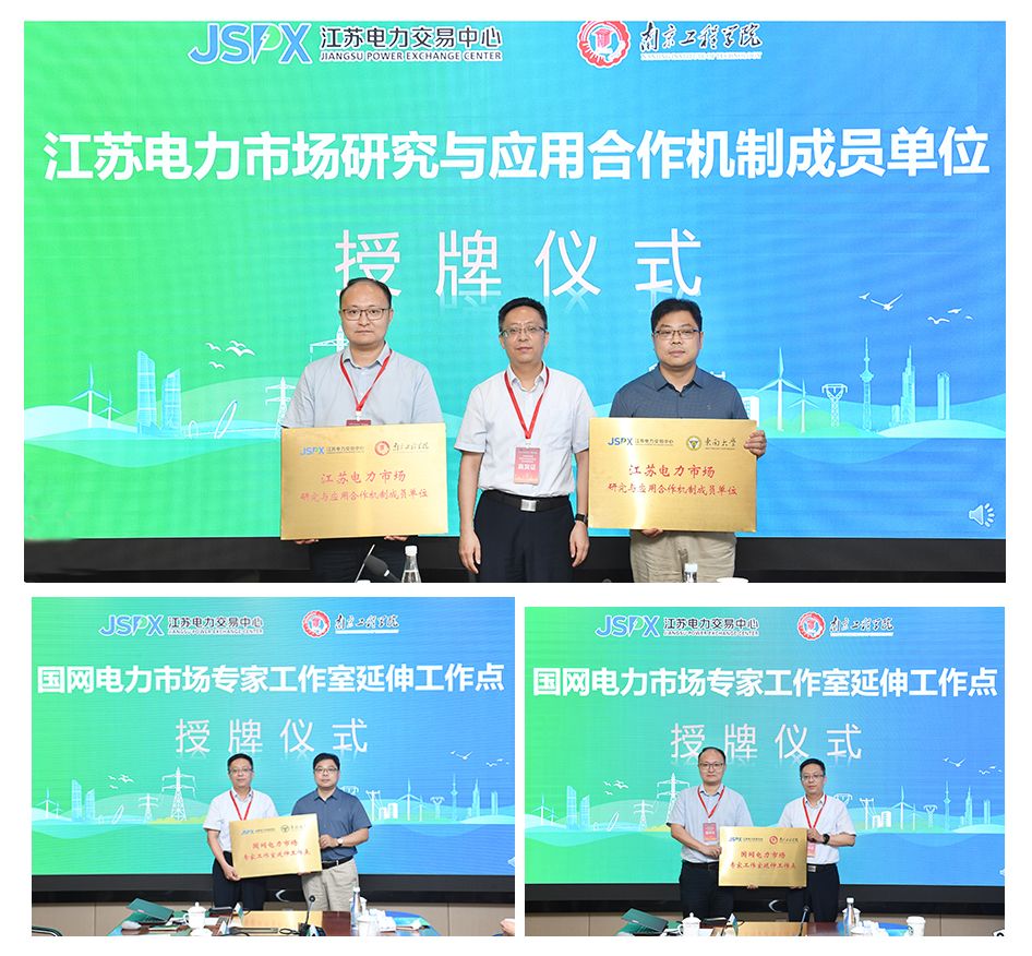 在全体与会成员的共同见证下,柳惠波分别为东南大学、304am永利集团授予“江苏电力市场研究与应用合作机制成员”“国网电力市场专家工作室延伸工作点”铜牌。会上还举办了“电力市场人工智能客户服务机器人”江苏正式上线仪式,与会人员共同观看了智能机器人的介绍视频。
