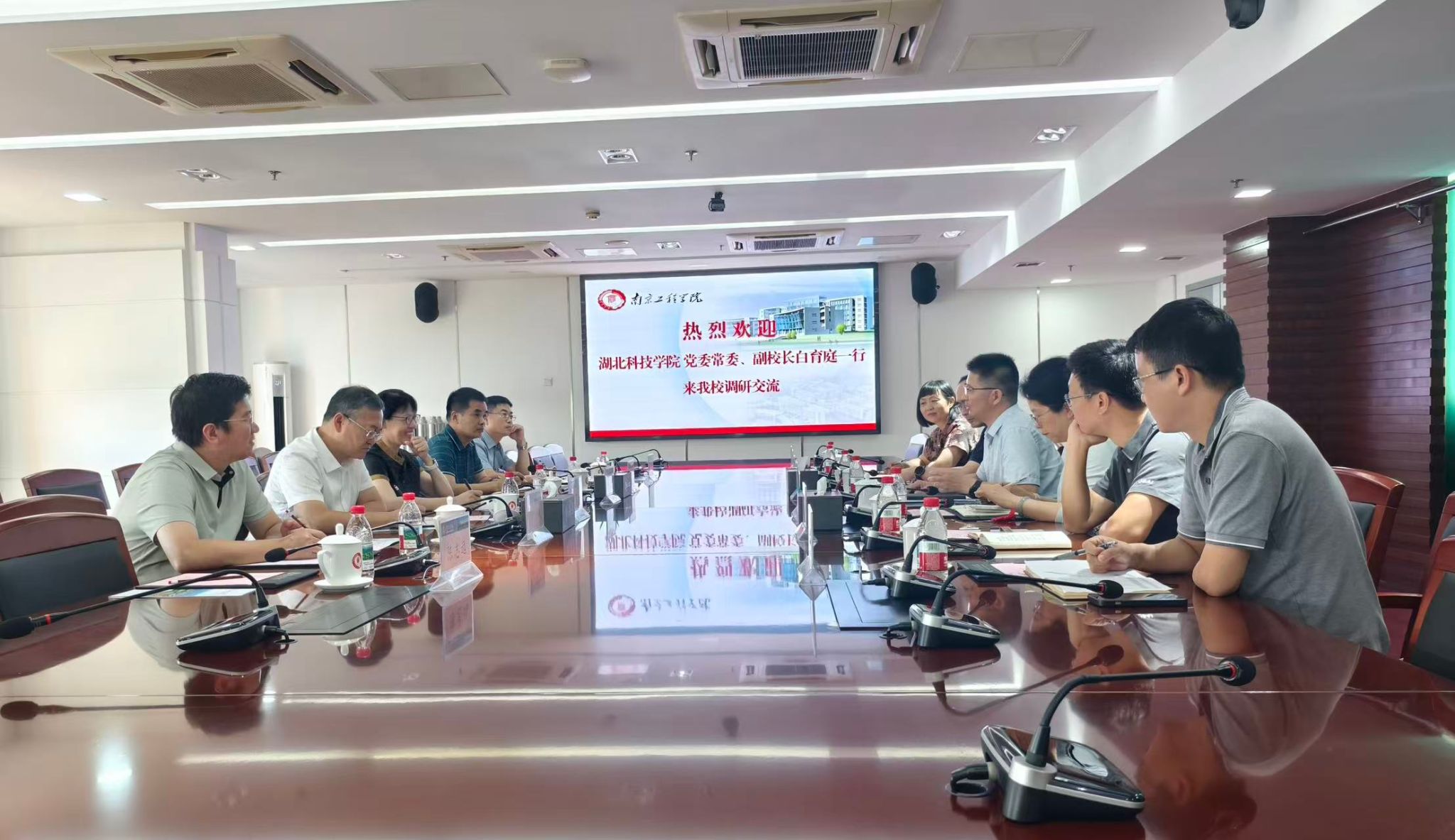 9月15日下午,湖北科技学院党委常委、副校长白育庭率队来校调研交流。党委常委、副校长朱松青在至勤楼·行政中心北303会议室热情接待了来宾并座谈。
