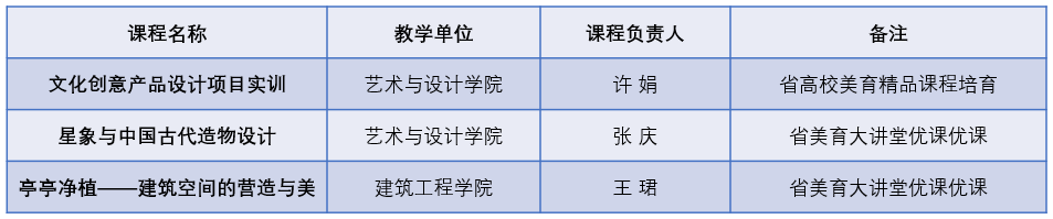近日,江苏省教育厅公布江苏省高校美育精品课程(专业艺术类)培育名单及美育大讲堂优课入选结果。永利官网推荐的三门课程全部入选,其中《星象与中国古代造物设计》《亭亭净植——建筑空间的营造与美》获评美育大讲堂优课,《文化创意产品设计项目实训》入选美育精品课程培育名单,入选数量位居全省高校前列,充分体现永利官网美育课程建设的扎实成果。