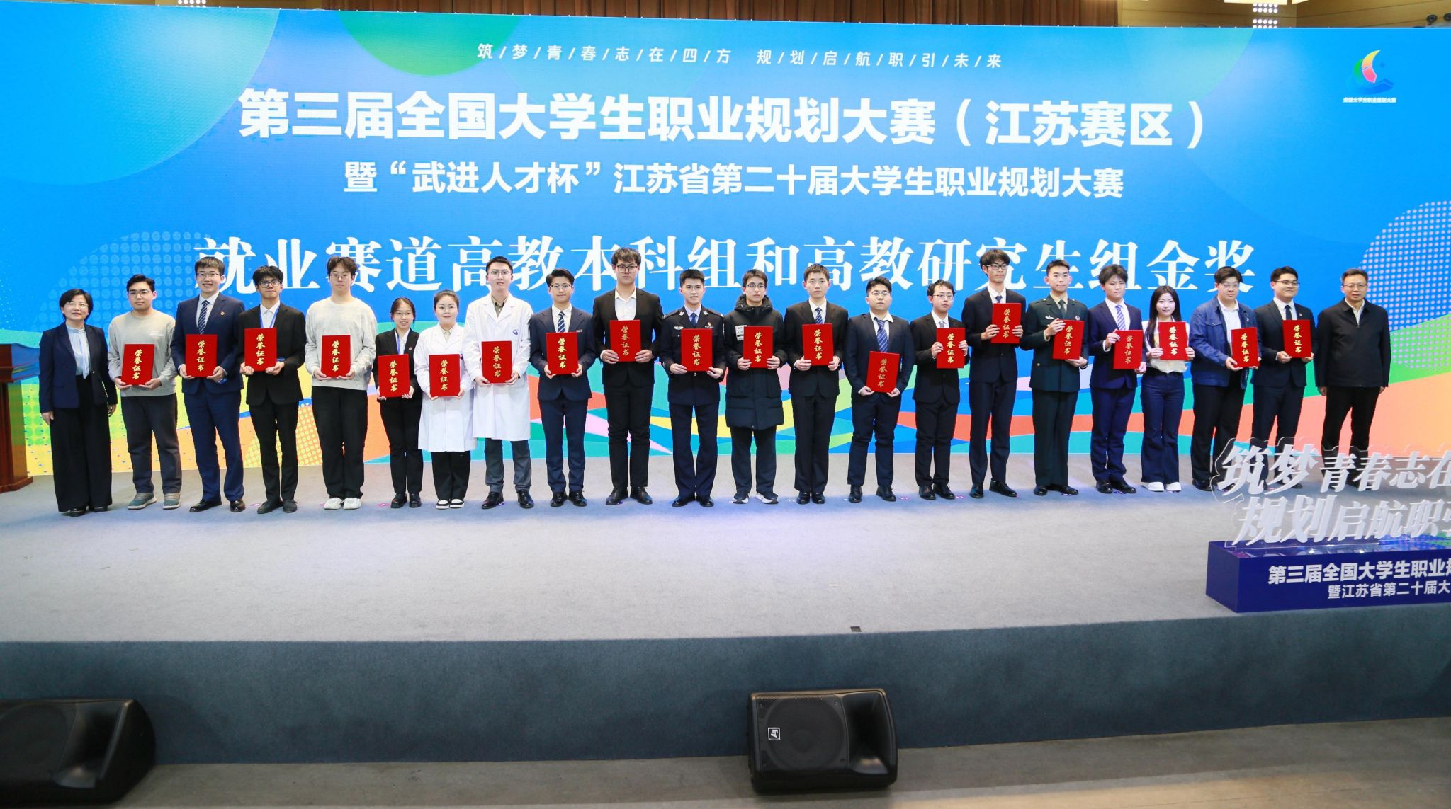 近日,第三届全国大学生职业规划大赛江苏赛区暨江苏省第二十届大学生职业规划大赛圆满落幕,教育部高校学生司(高校毕业生就业服务司)副司长吴爱华,江苏省教育厅副厅长陈艳、二级巡视员刘广鸣出席颁奖仪式。经过激烈角逐,永利官网参赛选手凭借扎实的专业基础、明确的职业目标和稳定的现场发挥,斩获“一金三银三铜”的好成绩,获奖层次及总数在全省高校中名列前茅。