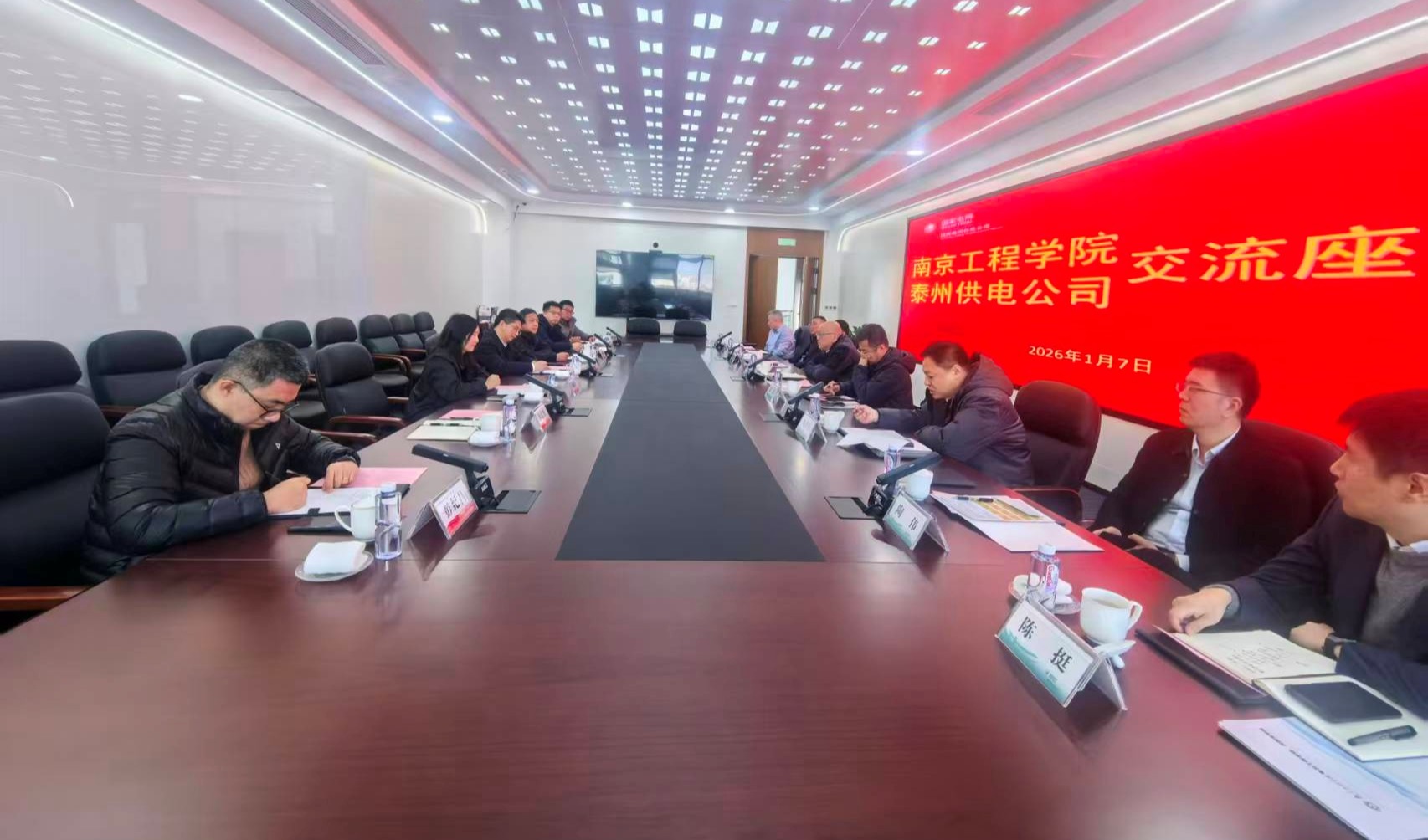 在国网泰州供电公司,朱松青一行与公司总经理、党委副书记王金虎等负责人进行座谈。朱松青介绍了学校发展历程、学科特色及在电力领域的积累与创新,希望双方在产学研平台建设、人才培养、成果转化、党建联建等方面深化合作,共同服务区域高质量发展。聂邦军分享了学校党建工作的特色做法。国网泰州供电公司表示愿与学校拓展合作领域,完善人才共育机制,助力电力行业进步。双方还就人才培养与科技项目合作进行了交流。