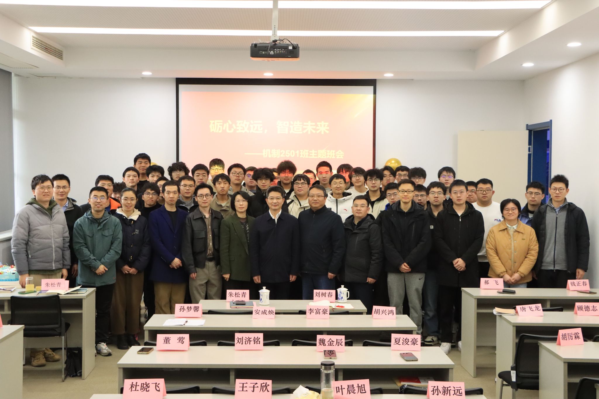 3月18日下午,永利官网首届智能制造拔尖人才实验班(军旗班)——机制2501班在工程实践中心1-221教室举行首次主题班会。党委常委、副校长朱松青来到班会现场,与全体同学面对面交流,并讲授“智造第一课”。该班由2025级机械类学生自愿报名、严格选拔后独立编成。