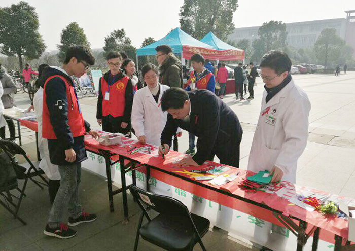12月1日是我国预防艾滋病日,今年的宣传主题是“携手抗艾,重在预防”。当天上午9点,校红十字会、学生处、团委、工会、门诊部、健康教育指导中心等部门在永利官网至馨苑·综合服务楼广场联合开展了预防艾滋病宣传教育活动。