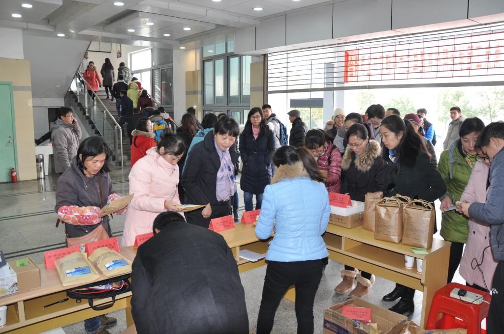 成子湖的银鱼、毛刀鱼、农家草鸡、草鸡蛋和大米等十几种农产品亮相展销会。展销会现场销售火爆,销售人员耐心地介绍产品的产地和营养价值及食用方法,教职工的购买热情高涨,大米、农家草鸡特别受到老师们的青睐。活动得到了学校组织部、后勤集团等单位的大力支持,短短两天时间销售农产品近2万元,成效显著。