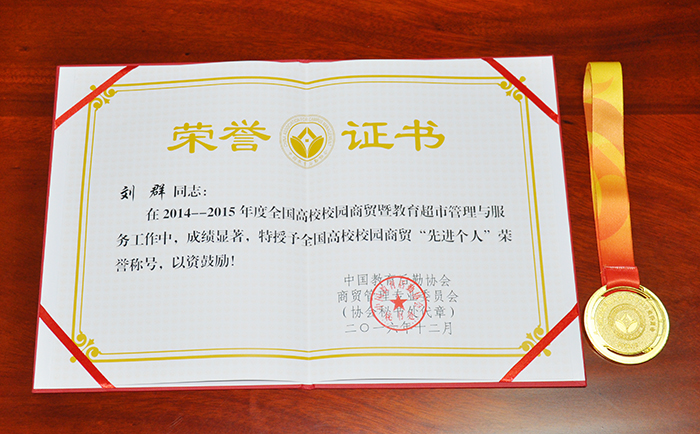 在刚刚结束的中国教育后勤协会商贸管理专业委员会年终总结会上,永利官网后勤集团商贸公司超市经理刘群喜获由中国教育后勤协会、商贸管理专业委员会颁发的“全国高校商贸服务与管理(教育超市)先进个人”表彰。