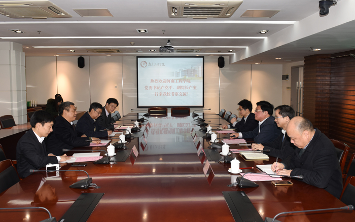 3月22日上午,河南工程学院党委书记卢克平、副院长卢奎一行来永利官网调研。永利官网党委书记史国君、副院长郑锋及相关部门负责人接待了来宾。