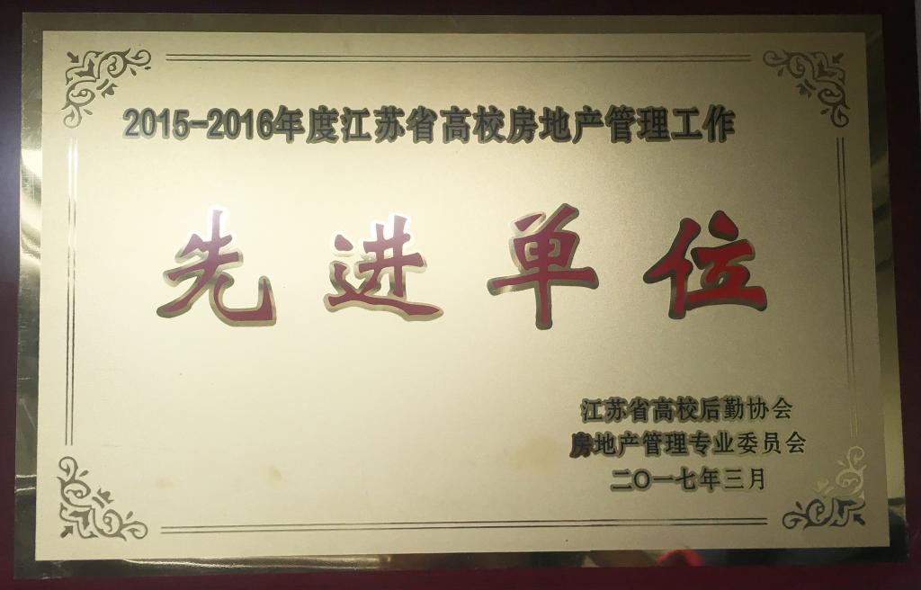 日前,江苏省高等学校后勤协会房地产管理专业委员会2016年年会召开,永利官网获“2015-2016年度江苏省高校房地产管理工作先进单位”称号。