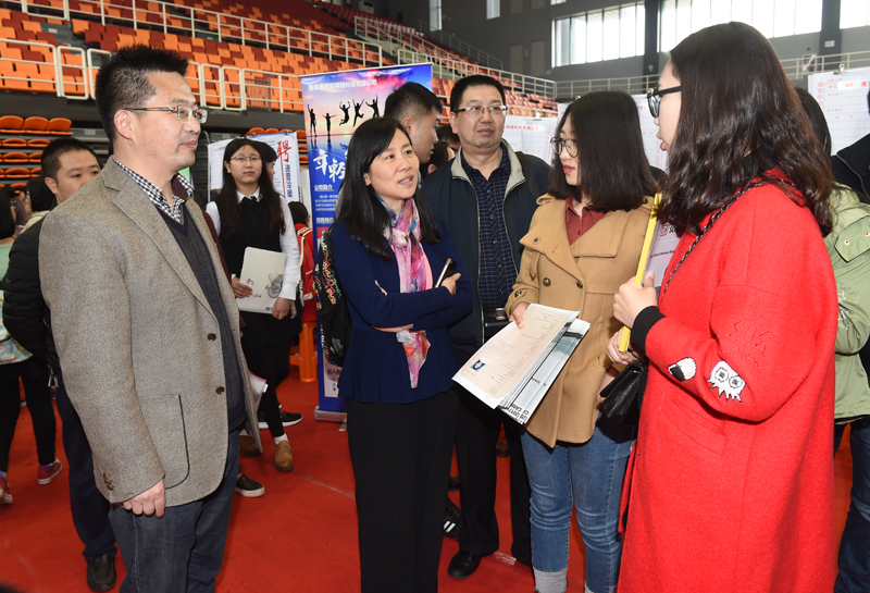 4月11日,南京毕业生就业市场江宁地区高校毕业生公益招聘会在永利官网天健苑·体育中心举行。张仰飞副院长,南京市人社局人才中心主任马书婷以及南京市劳动就业服务管理中心,江宁区人社局、区劳动就业服务管理中心,江宁大学城管理办公室的领导来到招聘现场,与部分用人单位招聘人员和毕业生进行亲切交流,指导就业工作。