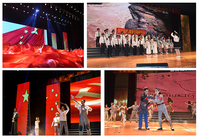 大气磅礴的音诗画《你是一面旗帜》为整场演出拉开了帷幕;九三学社春之声教授合唱团和永利官网学生们共同演唱的大合唱《保卫黄河》,慷慨激昂,形象地刻画了游击健儿为保卫黄河、保卫全中国而战斗的壮丽场景;舞台诗《热血忠魂》向观众们展现了共产党人的大无畏精神和革命情操;《过雪山草地》、《映山红》再现长征情景,弘扬长征精神;创作歌舞《红军老妈妈》以一颗红心表达了坚定的爱国情怀;《红军哥哥你慢走》充满红色记忆,仿佛把人们带回那红色的年代,让更多的人记住红色的井冈山,记住许许多多为革命献身的红军先烈;舞蹈《茉莉花与新四军》在轻柔中透出一丝红色的历史;京剧片断《沙家浜》展现了一个沉着冷静,机智灵敏的阿庆嫂;歌舞表演《奔赴新战场》和《新四军军歌》,以昂扬振奋的旋律,威武雄壮的气势,表现了新四军一往无前的战斗精神。