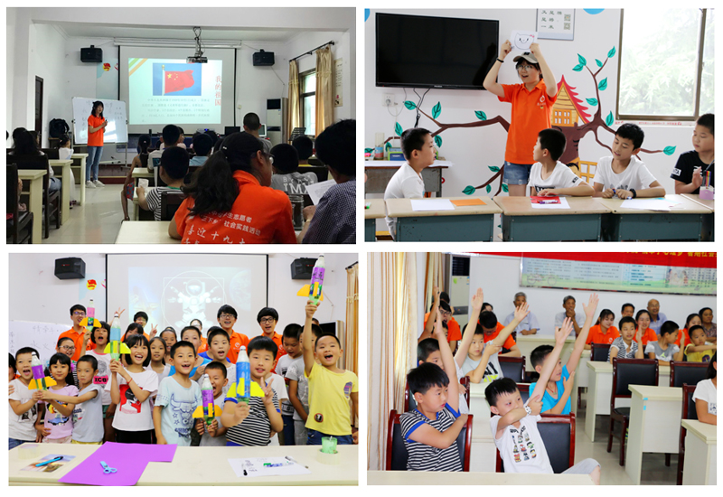 志愿者们相继开设了《安全知识教育》、《趣味实验》等课程。通过幽默风趣的动画短片和安全知识竞答的方式,提高孩子们自身的保护意识和安全意识;通过水火箭的简易模型原理讲解和实物制作,培养他们的动手能力与合作交流能力。《趣味实验》是为孩子们精心准备的环节,水火箭的放飞原理和制作于这群孩子而言是一种全新的体验,每一次的发射,每一次的升空,志愿者们都会守在孩子们的身边。孩子们开怀的笑声和欢呼,是对志愿者们最大的肯定。在这样愉悦的氛围中,志愿者和孩子们建立起深厚的友谊。