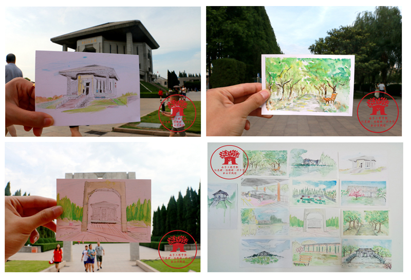 手绘是一种直观的艺术表达形式,即通过绘画作品传情达意。此次社会实践期间,团队文创组积极运用手绘的形式追忆总理。同学们通过参观、采风,经过数日笔耕不辍,共绘制纪念馆平面地图1张、明信片13张。作品以纪念馆地标性建筑为蓝本,选取纪念馆主馆、副馆、仿北京中南海西花厅等纪念性建筑,绘制独特的纪念馆景区风貌,用艺术的创作手法追忆一代伟人。