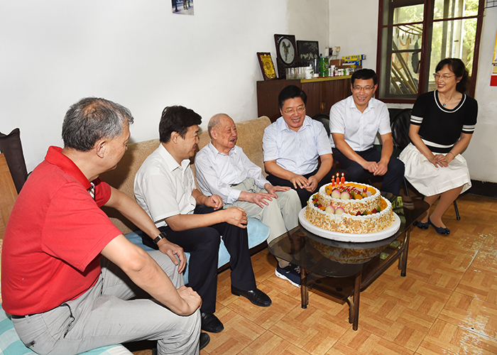 9月8日下午,在第33个教师节即将来临之际,党委书记史国君、院长孙玉坤、副院长张仰飞等校领导专程登门为永利官网百岁人瑞王伯西老师祝寿,并分别看望慰问了部分离退休老教师,向他们致以节日的问候。