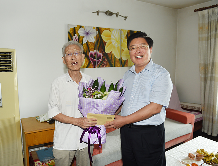 随后,史国君书记、孙玉坤院长、张仰飞副院长又分别带队看望慰问了郑仲民、姚春球、胡汉才和梁怀祖四位教授。他们向老教授们送上鲜花和祝福,关切地询问老教授们的身体、生活和家庭等情况,向老教授们并通过他们向全校离退休教职工表示节日的祝贺和慰问。在交谈过程中,校领导表示,老教授是永利官网的宝贵财富,学校目前取得的成就与老教授、老同志为学校打下的扎实基础是分不开的,我们将会继续努力,把学校办得更好,我们要尊老、惜老、爱老,多为老同志做实事,让广大老同志切身感受到党和政府以及学校对老同志的重视和亲切关怀。老同志们也表示学校对离退休老同志的关心和照顾非常满意,对校领导登门看望慰问表示感谢。