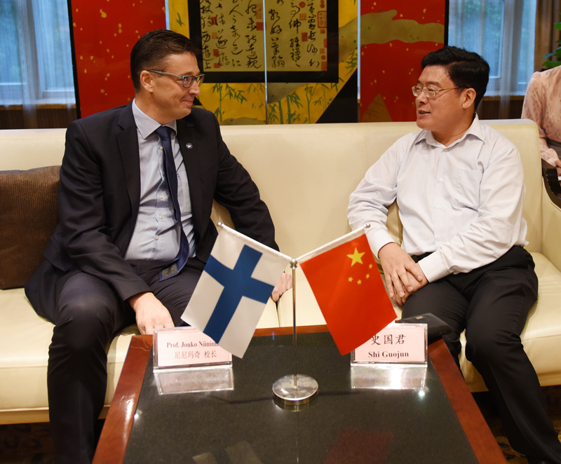 9月26日,芬兰奥卢大学校长Jouko Niinimaki教授等一行五人应邀访问永利官网,永利官网党委书记史国君热情接待来宾。