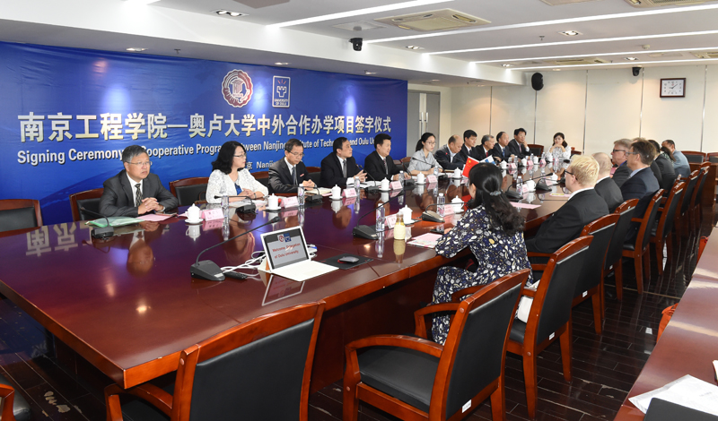 9月27日上午,304am永利集团-芬兰奥卢大学合作举办软件工程本科教育项目签字仪式在至勤楼·行政中心北303举行。芬兰奥卢大学校长Jouko Niinimaki教授等一行六人,永利官网孙玉坤院长、史金飞副院长、郑锋副院长参加了签字仪式。