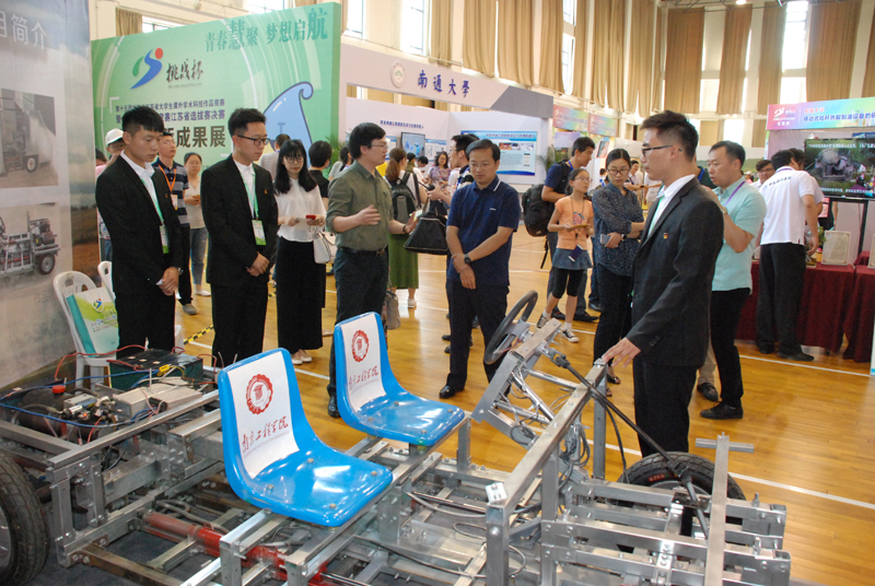 2017年江苏省大学生科技创新成果展是第十五届“挑战杯”全国竞赛江苏省选拔赛决赛系列活动之一。经各高校报送、团省委选拔,共汇聚了省内35家高校的43件科技创新作品。展出期间,团省委副书记司勇驻足永利官网展位,听取了《可伸缩纯电动汽车》的介绍,肯定了永利官网大学生创新工作成果。