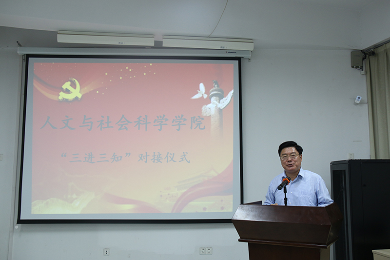 在对接仪式上,人文与社会科学学院党政负责人介绍了人文与社会科学学院在科研教学、学生工作、创新创业等方面取得的业绩成果,以及学院“三进三知”活动开展的情况。联系班级党员干部代表、校团委副书记张兴丽在发言中表示,她将全体新生视为自己的知心朋友,期望大学四年里,能够与年轻的学子们一路同行,享受成长的快乐。班主任代表吕庆华提出,高校班主任一言一行都体现着教育责任和精神气质,其本身就是一种文化资源,能够在潜移默化中为学生的成长成才树立榜样、指明航向。社保171班肖宇珏作为新生代表发言,她认为,对于大一新生来说,“三进三知” 专题实践活动不仅为新生提供了与各位老师、学校领导密切交流的平台,更重要是让来自五湖四海的同学们感受到了学校的温暖与关心,让全体新生能够更加轻松自然地融入大学生活。