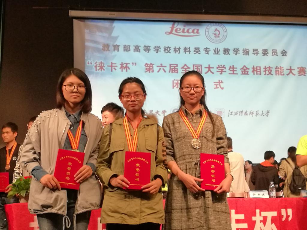 10月11日至13日,“徕卡杯”第六届全国大学生金相技能大赛在江西南昌举行。来自全国167所高校的497名学生参加了本次大赛,经过两轮复赛和两轮决赛的层层激烈角逐,永利官网选派的3名参赛学生取得1项一等奖、2项二等奖的优异成绩。其中,永利官网材料工程学院李世雯同学获得一等奖,楼姝婷同学、段志英同学获得二等奖。
