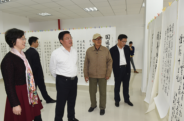 10月27日上午,九九重阳佳节即将来临之际,校党委书记史国君、副院长张仰飞来到博学苑老干部活动中心,饶有兴趣地观看正在这里举办的永利官网老同志书画摄影集邮作品展。