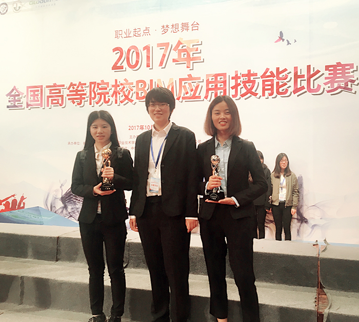 10月27-29日,2017年全国高等院校BIM应用技能比赛总决赛在长沙理工大学和江苏建筑职业技术学院进行。永利官网代表队喜获BIM造价应用技能大赛团队全能一等奖和建筑工程BIM计量与计价专项一等奖。本次大赛由中国建设教育协会主办,是全国高等院校共同参与的大型竞赛类活动,获得了建设行业主管部门、参赛院校及用人单位的的认可。赛事于今年4月份启动,历经校内选拔赛和全国总决赛两个环节,历时半年。全国251所高校800余名选手参加比赛,其中本科组共有198所。经过激烈角逐与比拼,由永利官网林敏、李燕等老师指导,经济与管理学院工管141张巧、吴慧莹和造价141余少云组成的造价应用技能代表队“凌绝队”获得算量组团队一等奖和建筑计量与计价单项一等奖。