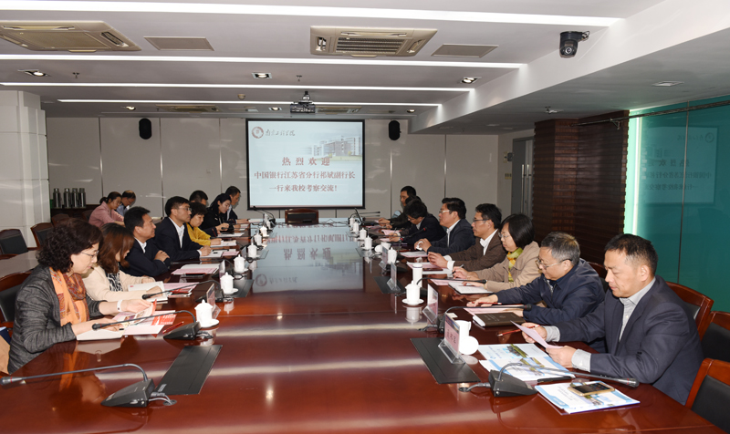 11月3日下午,中国银行江苏省分行副行长祁斌一行来永利官网就党建与思想政治工作进行调研,永利官网党委书记史国君、副院长张仰飞热情接待了来宾。