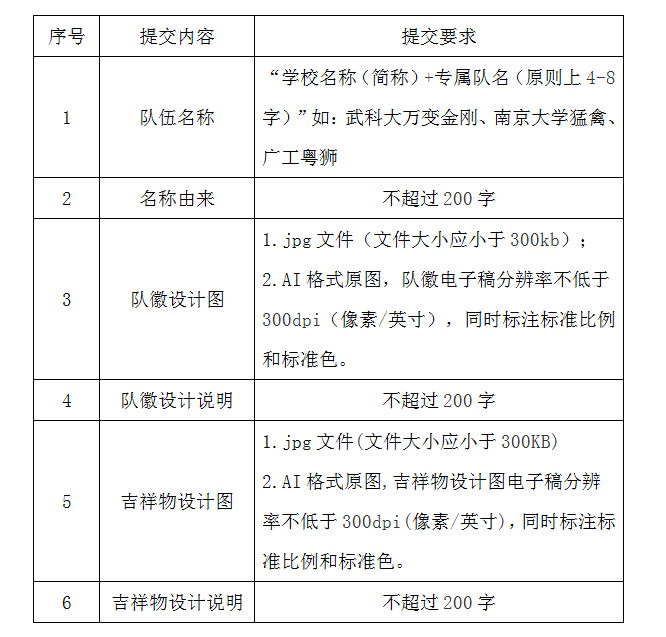 1.征集内容:中国大学生体育协会主办的比赛及活动中304am永利集团运动项目代表队使用的专属队名、队徽及吉祥物。(永利官网所有运动队采用统一专属队名、队徽及吉祥物)