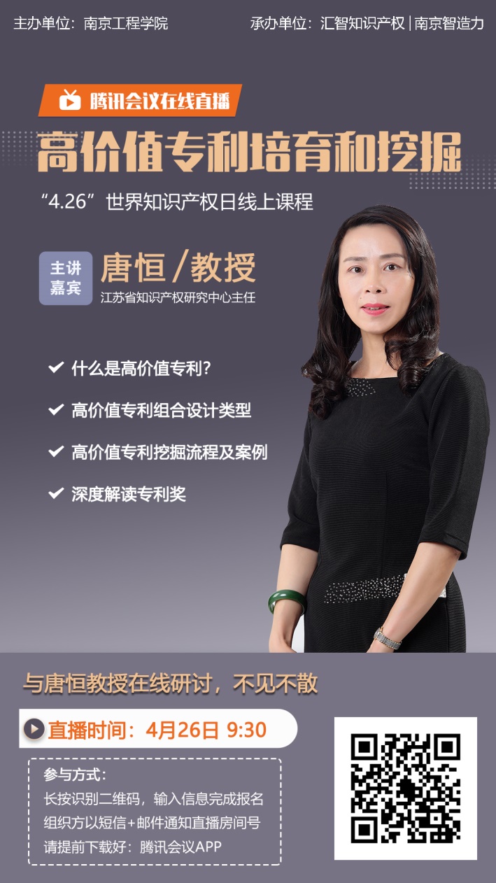 为深入贯彻教育部、国家知识产权局、科技部《关于提升高等学校专利质量,促进转化运用的若干意见》教科技【2020】1号文件精神,迎接第二十届“4.26”世界知识产权日,提高永利官网知识产权创新能力,提升永利官网专利质量,促进永利官网专利成果转化,永利官网举办《高价专利培育和挖掘》直播讲座。具体事宜通知如下: