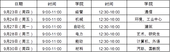 4.根据下表各学院报销顺序时间段,班长携带本班级报销学生材料,至事务中心大厅取号;