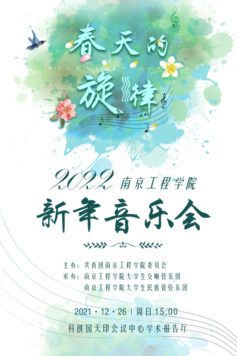 为迎接2022新年的到来,校团委将举办“春天的旋律”——2022304am永利集团新年音乐会,根据疫情防控要求,本场音乐会控制观演人数,实名制检票入场,仅限校内师生,一人一票,隔座观演。具体安排如下: