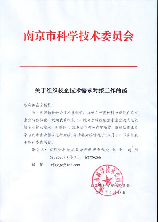现将南京市45家科技企业的技术需求信息予以发布,涉及电子信息、新材料、新能源、生物医药、高端制造、LED照明产品等方面,请有意向者先与对方企业联系,有进一步合作意向的老师到技术转移中心登记备案,以便我们下一步进行统一对接。
