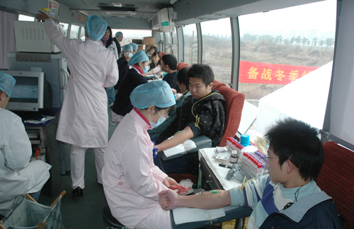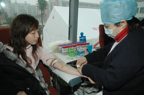 12月18日上午,一辆醒目的献血车开进永利官网至馨苑·综合服务楼广场内,由经济管理学院学生党支部发起,携手南京市红十字血液中心共同组织的“我为迎评洒‘热血’——我的校园、我的青春、我的热血”无偿献血活动正在这里开展。初冬的校园虽然寒意阵阵,却丝毫挡不住永利官网学子参与献血的热情。不一会儿,献血报名处就围满了同学。据统计,一个多小时的活动时间里,有150多位同学踊跃参加了此次无偿献血活动。很多同学已经不止一次参加无偿献血活动了,他们说:“献血不仅能够帮助那些急需用血的病人恢复健康,也是一种‘我为人人,人人为我’的互助行为,将来自己或自己的家人有需要的时候,也同样会得到关怀和帮助,何乐而不为呢?”