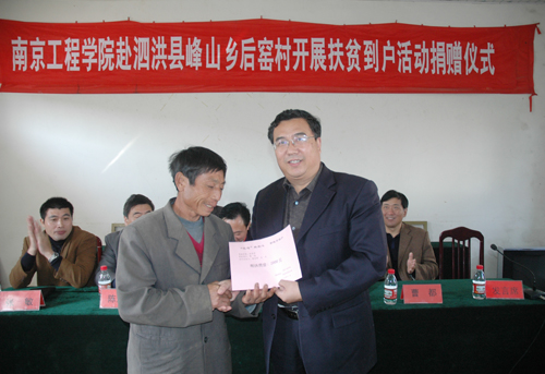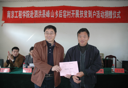 这次捐赠活动是为了贯彻江苏省委《扶贫开发“十一五”规划纲要》,实施千村万户帮扶工程而开展的。永利官网广大教职工党员和民主促进会支部成员积极响应号召,踊跃捐款捐物,共捐款57310元、各类图书600余册,这些款物主要用于帮助后窑村26户贫困户开展脱贫致富活动和帮助后窑村党支部建设村文化篮球场。