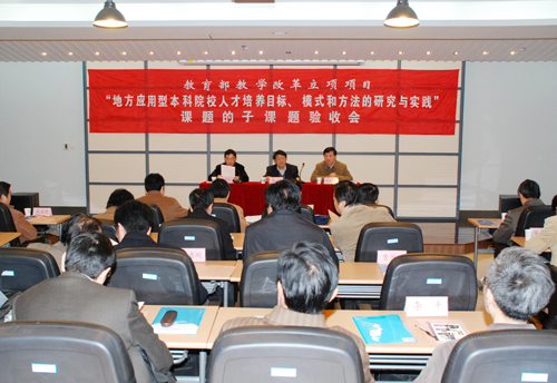 永利官网陈小虎院长主持的教育部教学改革立项项目“地方应用型本科院校人才培养目标、模式和方法的研究与实践”课题的12项子课题,经过两年多的研究与实践,顺利完成了研究任务。3月22日,由我国知名高等教育研究专家南京大学龚放教授为总组长,来自省内东南大学、南京理工大学、南京航空航天大学、南京工业大学、南京师范大学、河海大学和南京数控机床厂等高校和单位的专家组成的课题鉴定专家组对机械、热能与动力工程、自动化、电气工程及其自动化、通信与信息工程、计算机科学与技术、材料成型、土木工程、实训基地建设、科技创新体系以及职业能力培养等12项子课题进行了评审鉴定。