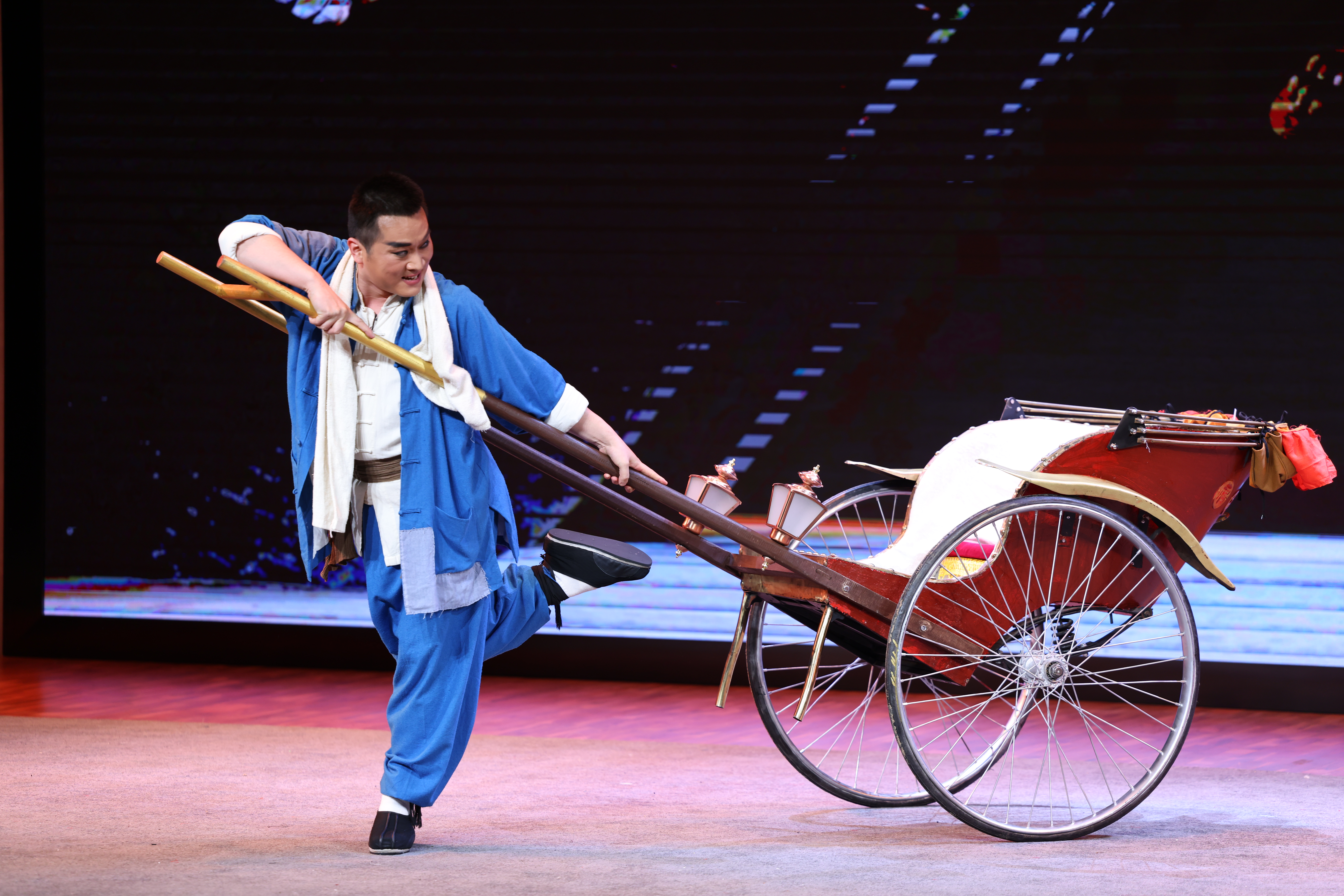 戏一开始,他饰演的“祥子”拉着新买的车,脸上写满了幸福和希望,一段精彩的黄包车舞,让老舍先生笔下“圆头圆脸,老带着笑”的大小伙儿顿时活灵活现。然而,结尾处的祥子佝偻着,孤身一人在拉车,这次他拉的是一辆破旧的车,步伐沉重,眼神迷茫,默念着“只有死是真的”,全然失去了对生活的希望。演员精湛的表演,让无法摆脱贫困和压迫的命运悲剧“具象化”,丝丝牵动着在场观众的心。