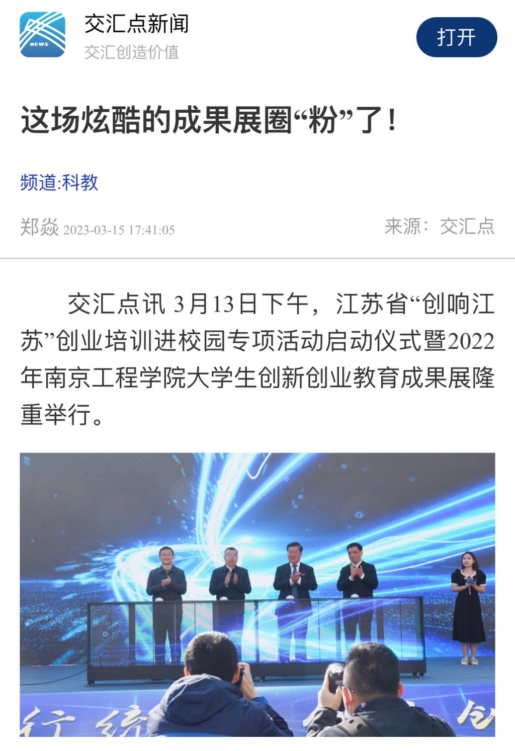 交汇点讯 3月13日下午,江苏省“创响江苏”创业培训进校园专项活动启动仪式暨2022年304am永利集团大学生创新创业教育成果展隆重举行。