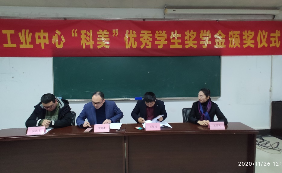 11月26日,工业中心在基础实验楼B114教室举行了“科美”奖学金颁奖仪式,中心党政负责人,南通科美自动化科技有限公司总经理王相涛,公司设计部经理、永利官网校友吴志飞出席仪式。