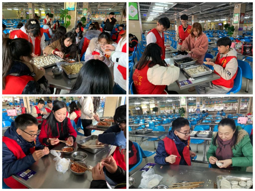 为弘扬传统饮食文化,增强师生之间的交流,丰富同学们的大学生活,12月16日,艺术与设计学院于萃园一食堂开展“师生情‘艺’浓,以饺暖人心”活动。该院党总支书记屈春芳、工业设计201第二班主任侯建军、学工教师代表以及30余位同学一同包饺子,大家以饺交心,现场欢声笑语不断。