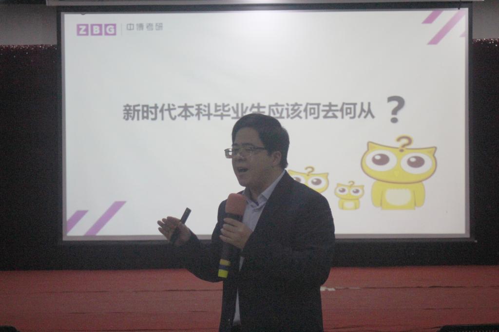 会上,曹老师从本科生的发展方向、考研全方位分析和考研全程规划等三个方面与同学们进行了分享。曹老师介绍,考研是拓展宽广视野、获得更高平台、积累优质人脉、提升未来发展竞争力的重要途径,他从考研现状入手,分析了近几年考研报录比、考生分布、报考意向地区分布,为同学们梳理了考研整体流程,重点从考研各科目的考试题型、复习规划、方法体系、学习时间安排等方面介绍了如何备战考研,对同学们比较关心的常见问题与难点进行了详细讲解,并就考试过程中需要注意的问题给出了很好的建议,给大家指出了努力的方向。