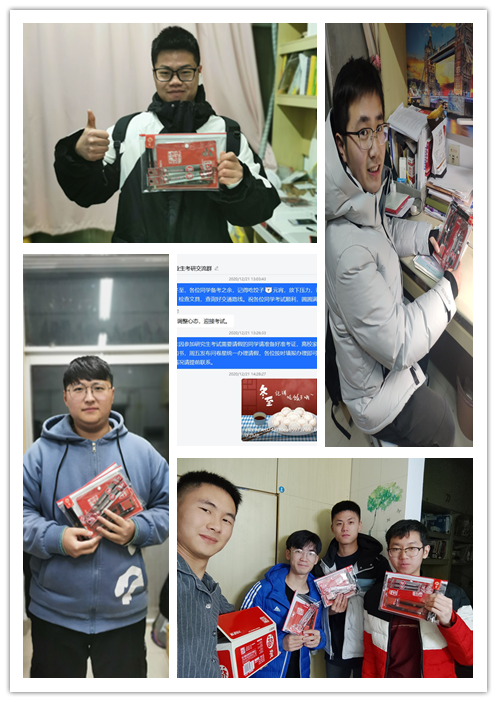 该院教师将“加油福袋”送到同学们的宿舍,福袋中有考试需要的中性笔、涂卡笔、套尺。“学院一直十分关心我们考研的同学,今天是冬至,收到这份‘福袋’,实在是太惊喜了。”除了送上“加油福袋”,学院还组织了第二班主任、班主任、学工办组成的考研咨询团,为“研途”学子们提供线上、线下的立体化、个性化的咨询,从备考准备、学校选择、时间安排到心理咨询,个人生涯指导等全方位覆盖的咨询网,助力学子们一路向前。