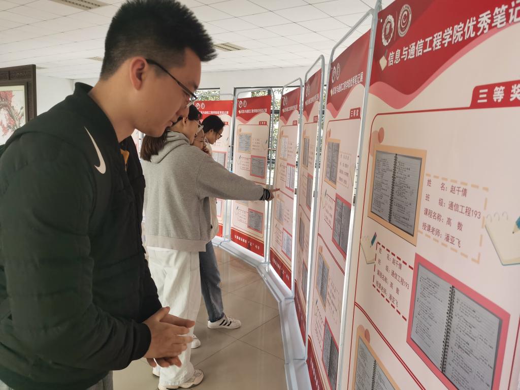 本次大赛参赛作品为班级推荐,所推荐作品通过“南工程信通院”公众号进行投票,选出30本优秀笔记作品。依据笔记内容是否准确全面、书面是否工整等标准,该院第二班主任从30份作品中评选出15份优秀课堂笔记。其中,信息192班杨谨弛、通信181班傅玉欣荣获一等奖,电子信息181班王菲等五位同学获得二等奖、通信181班的邢海云等八位同学获得三等奖。评选出的优秀课堂笔记制作成展板在信息楼一楼集中展示,供全院学生学习。