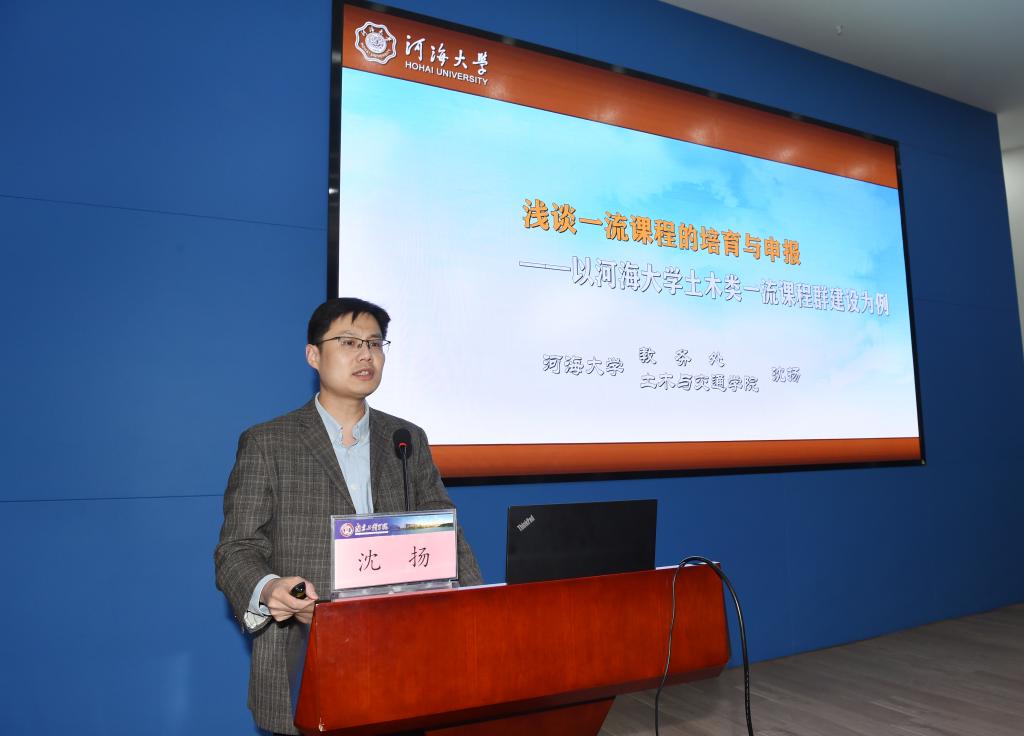 沈扬教授从顶层设计、技术特色、导用结合三个方面,以河海大学土木类专业课程群的一流课程培育为例,介绍顶层设计与课程培育间的内在联系,从专业建设出发介绍如何设计专业及专业内课程的课程思政标准及对内涵发展的思考,从专业认证出发介绍从确定课程目标、提出关联方法到形成反馈机制的系列课程建设理念,从“新工科”建设出发介绍专业课程如何整合设计,也从实战层面对线上、混合式和虚拟仿真课程的申报提出一些建议。