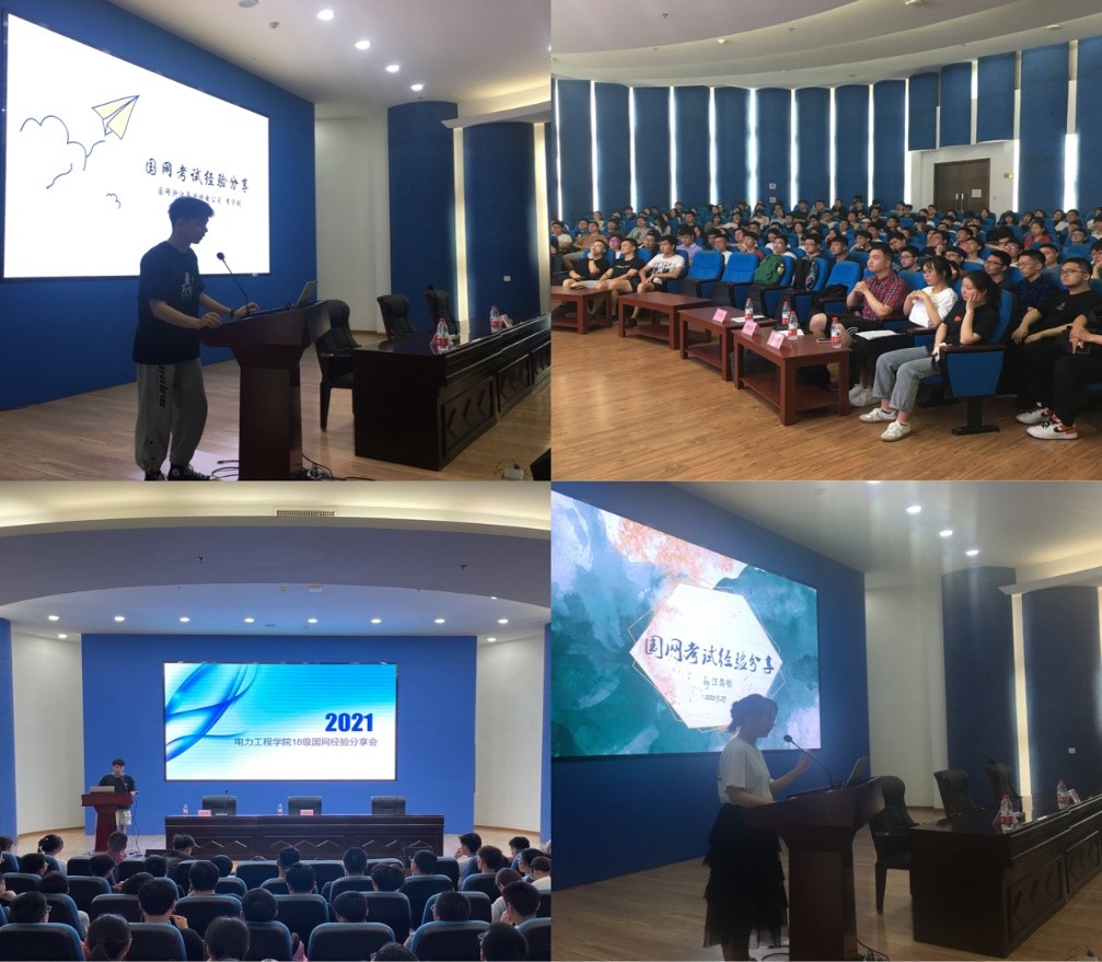 为引导同学们科学制定国网应试复习规划,提高高质量就业的能力,电力工程学院于5月底在图书馆报告厅连续举办两场2021届毕业生国网应聘经验分享会。近500名有意原参加国网考试的2018级同学踊跃参加活动。