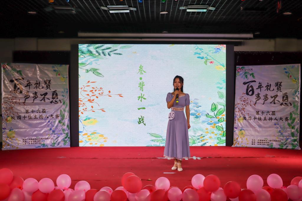此次主持人大赛决赛采用晋级制,分为搭档主持、PK主持和情景主持三个环节。在第一轮搭档主持环节,选手应鹏辉、盛欣然主持的《开学第二课》,通过讲党史、学党史,将老一辈的革命烈士革命家书生动的在舞台上重现,引人落泪钦佩;选手范理文、赵涵主持的《南工程微电影比赛颁奖典礼》,带领全场观众品味南工程校园生活的点点滴滴;第二轮比赛更是扣人心弦,七位未能晋级的选手各选择一个成语作为主题,进行一分钟的现场演绎,最终朱凌钢以流畅的表达向大家讲述了“白面书生”的故事,赢得了大众评委的青睐,成功闯入第三轮的决赛。决赛环节考验主持人的临场应变能力,要求选手现场抽题进行情景主持。“在电影节采访中,面对记者粗鲁的提问与嘉宾愤怒离场,主持人该如何处理尴尬气氛?”“决赛现场有人提出退赛,主持人又该如何安抚选手情绪?”面对一系列的情景题,四位选手再接再厉,或循循善诱,或风趣幽默,或充满智慧,巧妙应对突发情况,将比赛推向高潮。经过激烈角逐,杨明昊、徐璐瑶、范理文获得本次总决赛的冠、亚、季军。