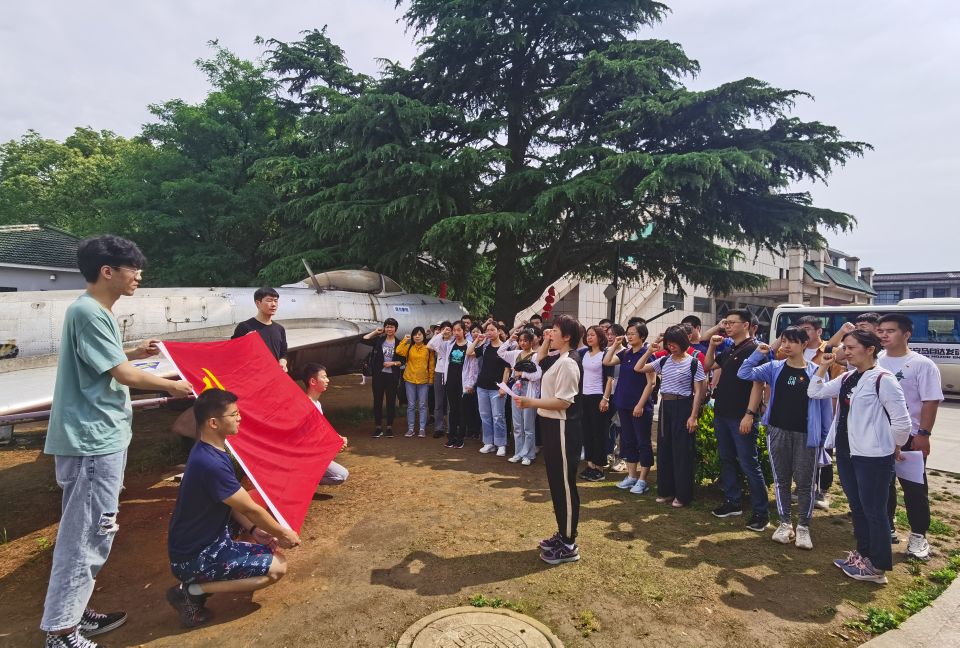 该院党委书记陈建红带领师生党员重温入党誓词;学院副院长兼纪检委员朱昊老师为师生党员讲述新四军相关历史的党课;学生党员周嘉玲、袁锐轩等7名党员同学表演情景剧《陈毅托子》;师生党员们参观了“苏南人民奋起抗击日本侵略军”“茅山抗日根据地的开辟”“茅山新四军东进北上”等史实资料。