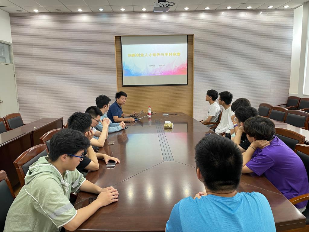 6月18日,机械工程学院举办了“初心向党庆百年·科技创新再出发”科创大讲堂活动。活动邀请该院院长助理成焕波副教授作“创新创业人才培养与学科竞赛”专题报告,该院分管学生工作负责人、辅导员代表参加座谈会。
