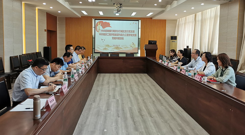 为进一步深化党史学习教育成果,开创院企合作新篇章,6月22日,能源与动力工程学院党委与招商银行南京分行城北支行党支部党建共建签字仪式在9号楼312会议室举行,招商银行南京分行城北支行行长王浩、党支部书记唐珊珊等一行5人,该院党政相关负责人等出席此次签约仪式。