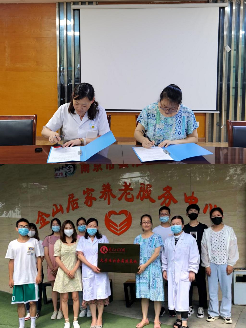 7月14日下午,艺术与设计学院党总支副书记胡晓清带领慧助夕行志愿团前往南京市金康光华养老中心调研,与该中心签订大学生社会实践基地合作协议,并举行授牌仪式。